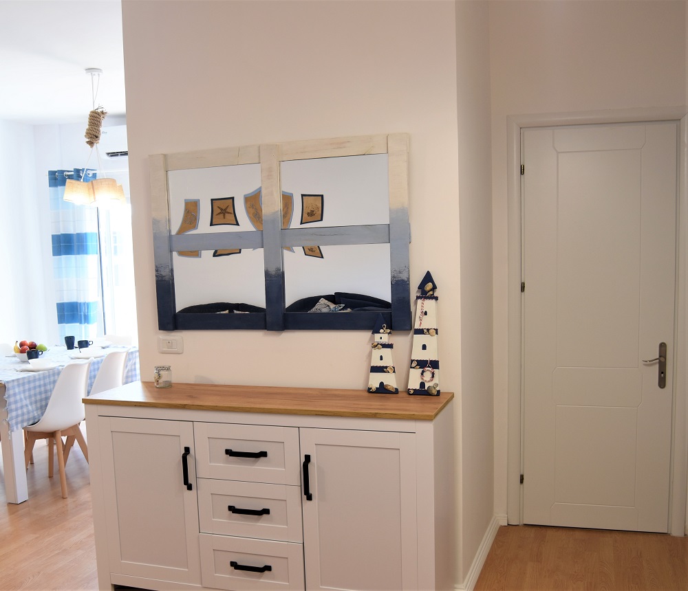 Dominuje w nich kolor biały, wszelkie odcienie niebieskiego, dużo granatu oraz odrobina czerwieni oraz oczywiście drewno stare, nowe, wypłukane przez fale. Co zrobiliśmy: